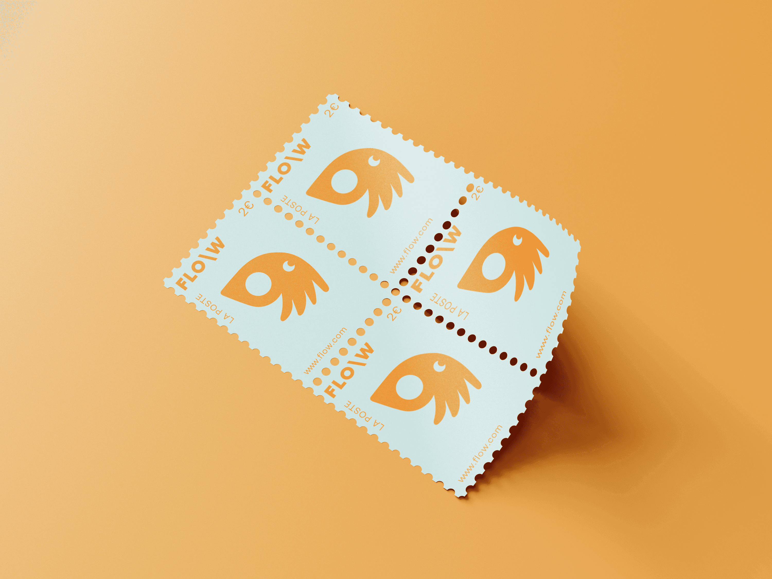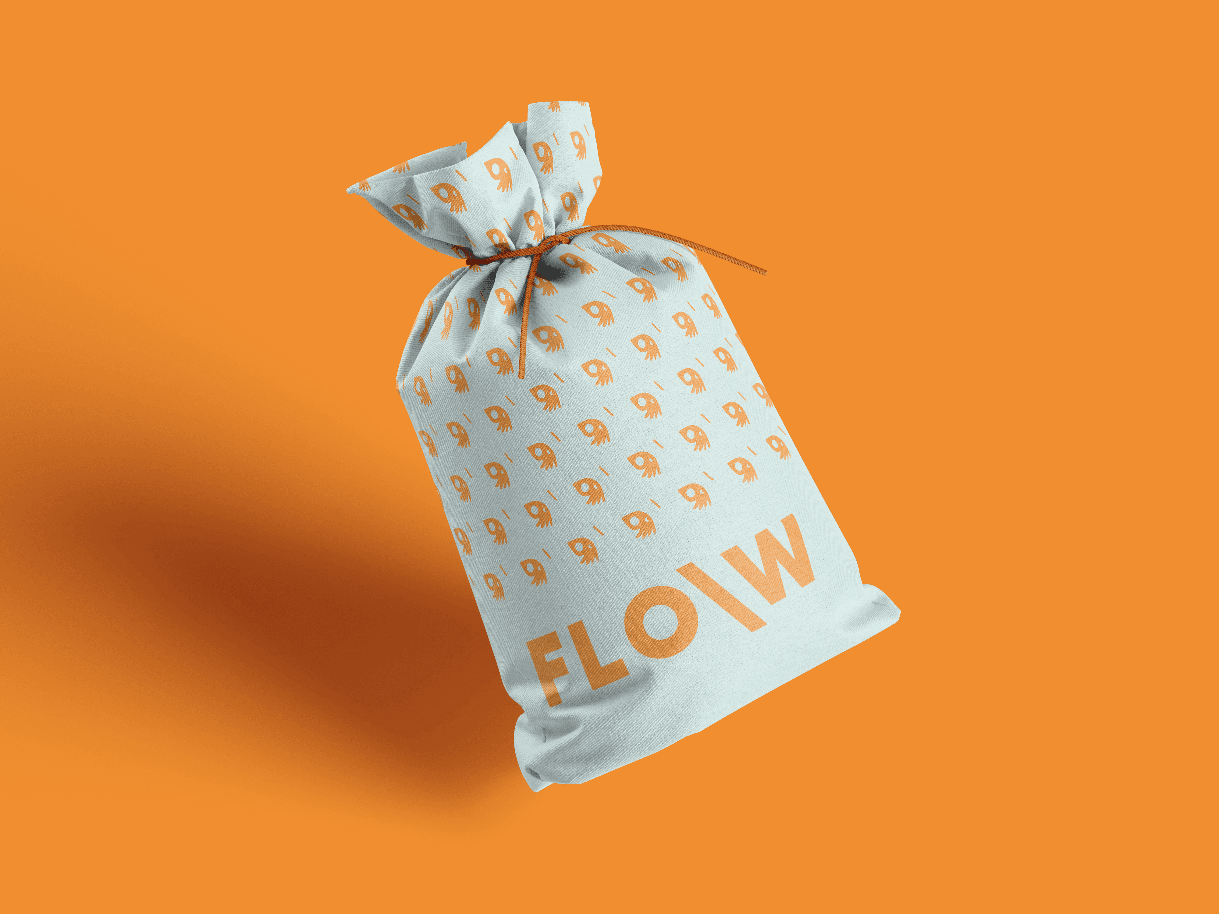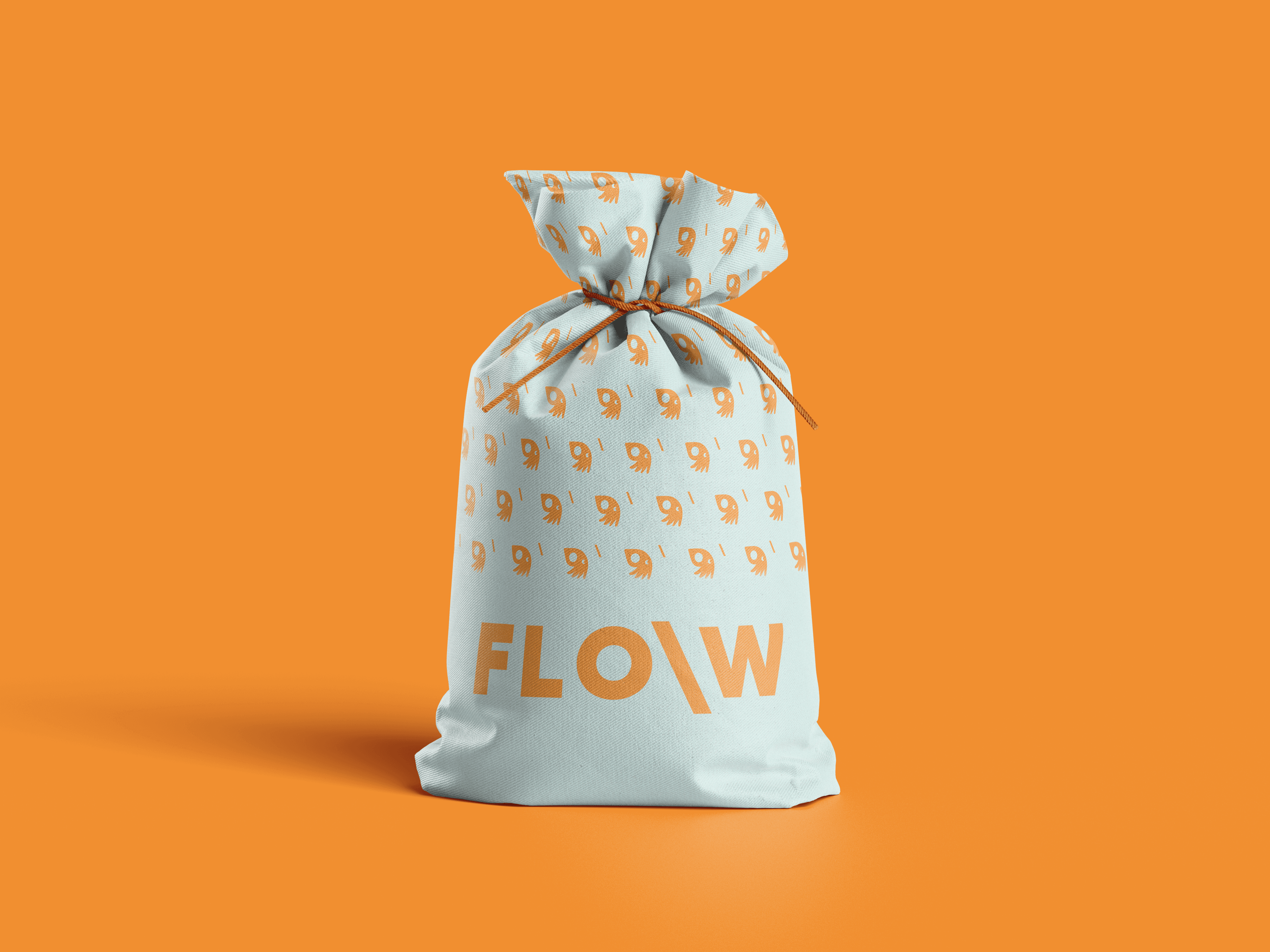 Le logo, construit autour d’un symbole hybride évoquant à la fois un oiseau marin et une vague stylisée, capte cette idée de mouvement libre et organique. Sa forme arrondie, presque vivante, rappelle le flux, le courant et la fluidité qui inspirent le nom FLO\W. Le slash inversé « \ » devient un repère graphique : un souffle, une direction, un changement de rythme.