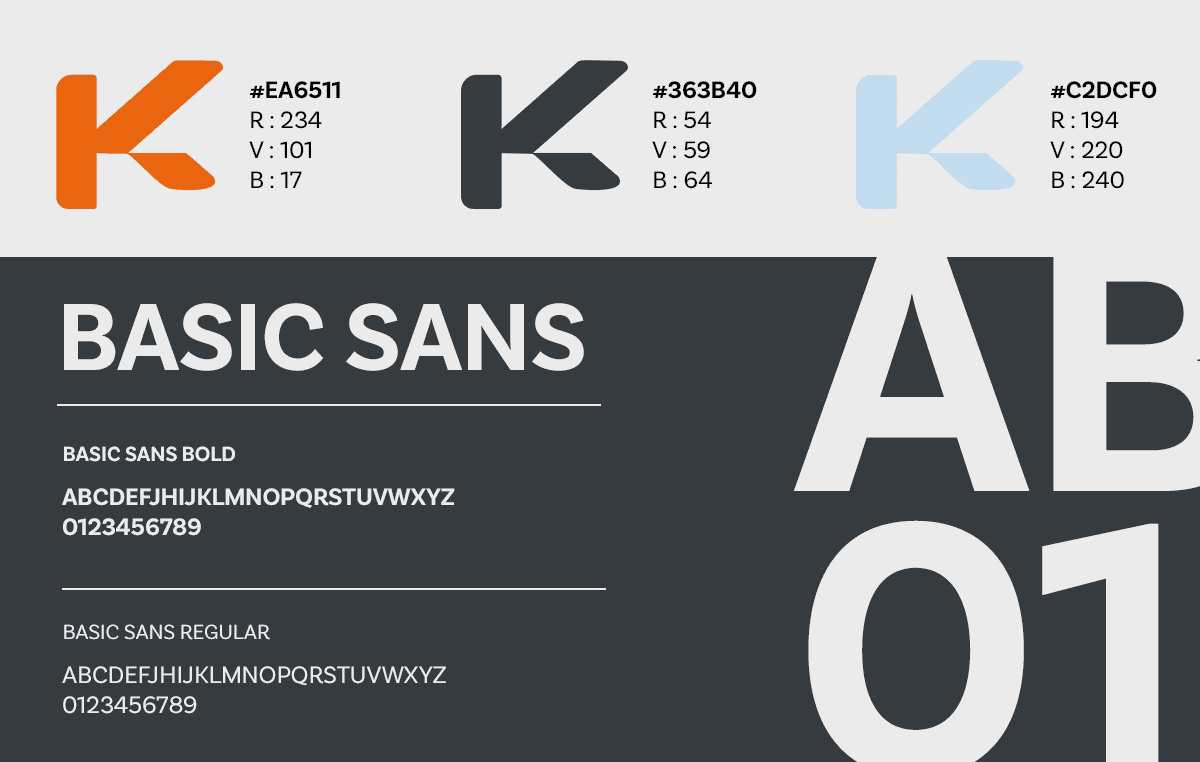 L’identité s’articule autour d’un K central et affirmé, pensé comme un repère graphique fort.