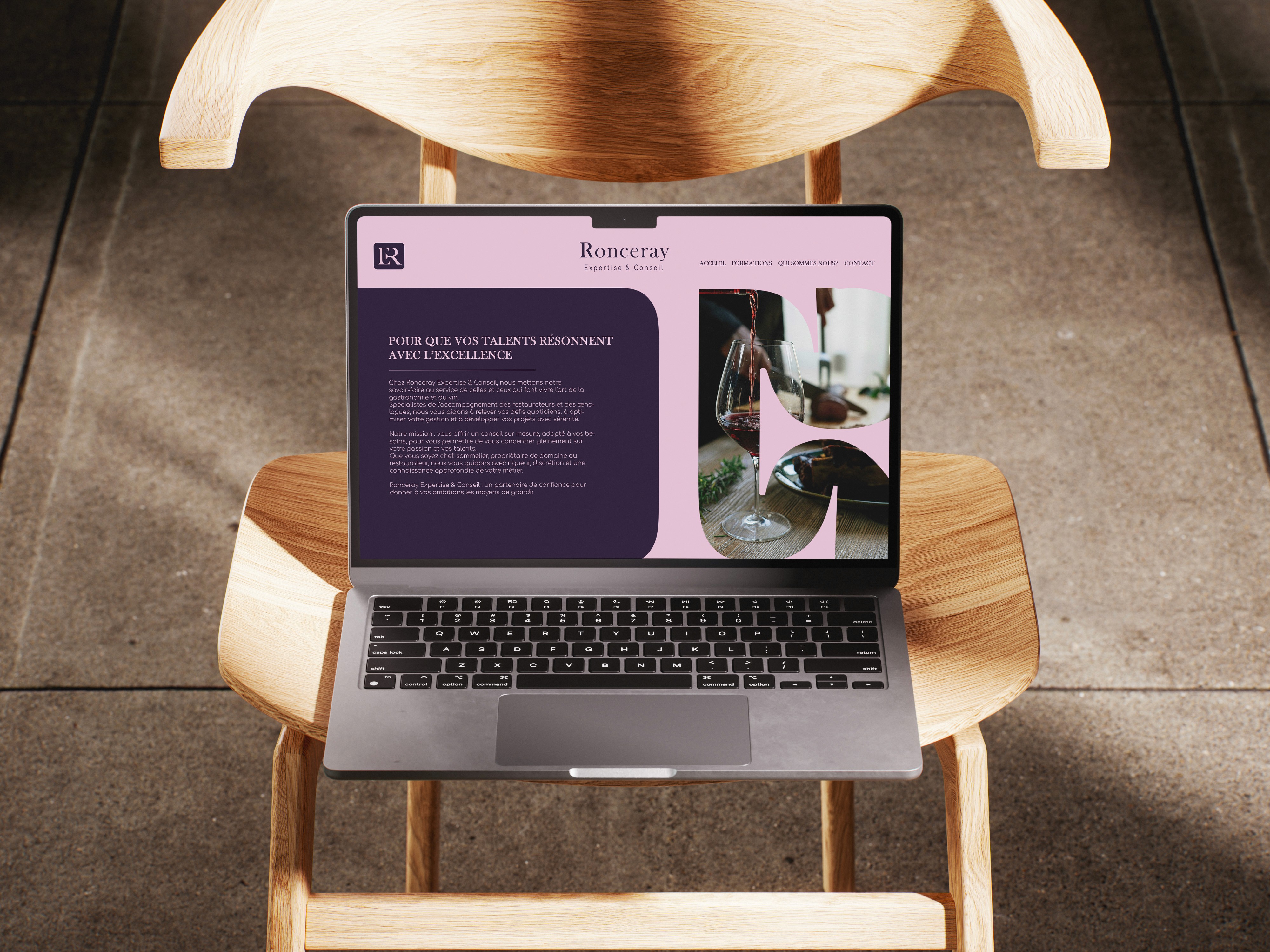 Pour Ronceray Expertise & Conseil, j’ai imaginé une identité visuelle sobre et raffinée, conçue pour incarner à la fois l’excellence du conseil et la proximité avec les professionnels de la gastronomie et du vin. L’objectif : créer un univers graphique élégant, capable de refléter la précision de l’expertise tout en évoquant la passion et la technicité propres aux restaurateurs et aux œnologues.